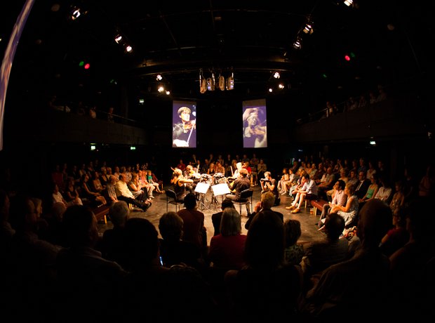 It was displayed at the RWA, Bristol as part of their Centre Stage exhibition. The artwork consisted of a to-scale model of the theatre, complete with stage, proscenium arch and seating. The picture here shows one of nine peepholes, designed to give glimpses of the stage and auditorium from various vantage points. On looking through them, viewers were rewarded with projections of recent shows, along with footage of actors warming up and of stage hands taking sets down at the end of a show’s run. On the outer walls of the gallery were archival projections of the theatre, footage of life backstage and recordings of shows as seen from different sightlines within the theatre.